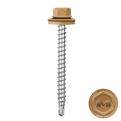 Кровельные саморезы Daxmer (Даксмер) по дереву цветом RAL1011 Светлое дерево 4,8*50мм окрашиваются УФ-стойкой полиэфирной порошковой краской. Цинковое антикоррозийное покрытие обеспечивает длительный срок службы саморезов (не менее 25 лет). Специальная металлическая шайба с ЕРDМ - уплотнителем обеспечивает плотное прилегание профилированного металла (кровли) к деревянной обрешетке, а также препятствует попаданию влаги.