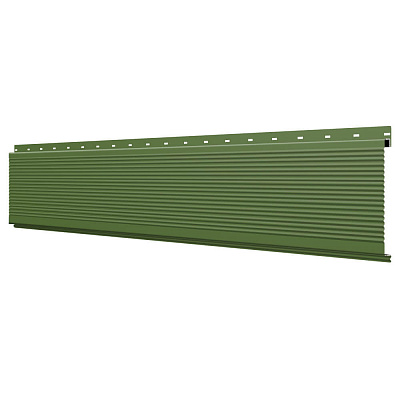 Линеарная потолочно-стеновая панель РИФЛЕНАЯ усиленная цвет RAL6002 Зеленый Лист применяется в качестве софитов для подшивы крыши, наружной и внутренней отделки потолков, стен, фронтонов фасада дома в Ставрополе.