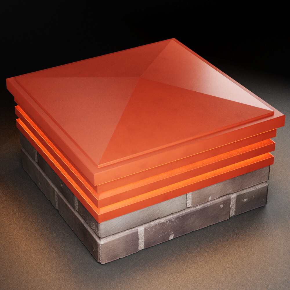 Преимущества колпака Бона ХайТек Красный на столб 2х2 кирпича с подсветкой