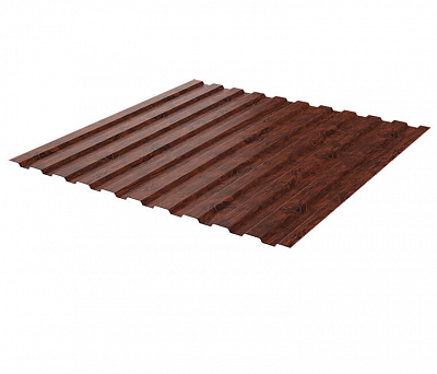 Маркировка «С» обозначает, что профлист предназначен для возведения стен, цифра 8 — это высота профиля 8 мм, число 1150 — рабочая ширина листа в мм. Производится из рулонной стали оцинкованной с полимерным покрытием под дерево Античный Дуб 0.45мм SteelArt (Россия).