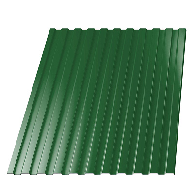 Маркировка «С» обозначает, что профлист предназначен для возведения стен, цифра 8 — это высота профиля 8 мм, число 1150 — рабочая ширина листа в мм. Производится из рулонной стали оцинкованной с полимерным покрытием RAL6002 Зеленый лист 0.45мм.