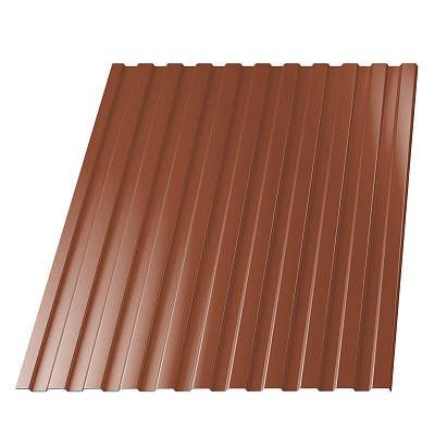 Маркировка «С» обозначает, что профлист предназначен для возведения стен, цифра 8 — это высота профиля 8 мм, число 1150 — рабочая ширина листа в мм. Производится из рулонной стали оцинкованной с полимерным покрытием RAL8004 Терракотовый 0.45мм.