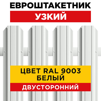 Штакетник Узкий RAL9003/9003 Белый двусторонний