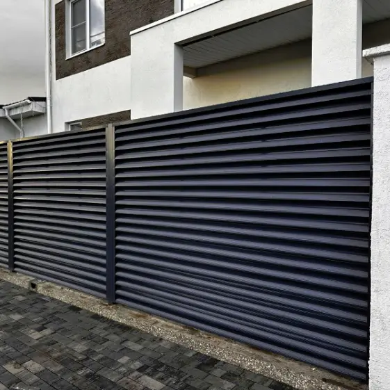 Благородный и таинственный, этот двухсторонний забор-жалюзи с ламелями Еврожалюзи в элегантном оттенке RAL 9005 Черный полиэстер пленяет с первого взгляда. Его завораживающая глубина и мистическая притягательность превращают обычное ограждение в арт-объект, подчеркивающий ваш статус и вкус. Стильный, изысканный и одновременно загадочный — он не просто ограждает территорию, а создаёт ауру роскоши и уверенности. Позвольте себе очарование черного — и ваш участок засияет новой, чарующей энергией!