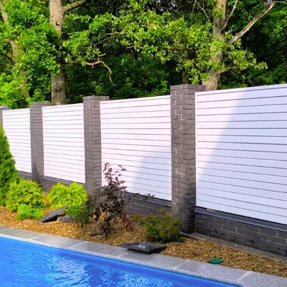Горизонтальный секционный забор-жалюзи с ламелями серии «Хай-Тек», выполненный в изысканном белом цвете RAL 9003. Двустороннее покрытие полиэстер обеспечивает безупречный внешний вид и со стороны улицы, и со двора. Современный дизайн в сочетании с элегантной геометрией ламелей подчеркивает архитектурный стиль дома и придает территории опрятный и завершенный облик, превращая забор не только в надежную защиту, но и в декоративный акцент участка.